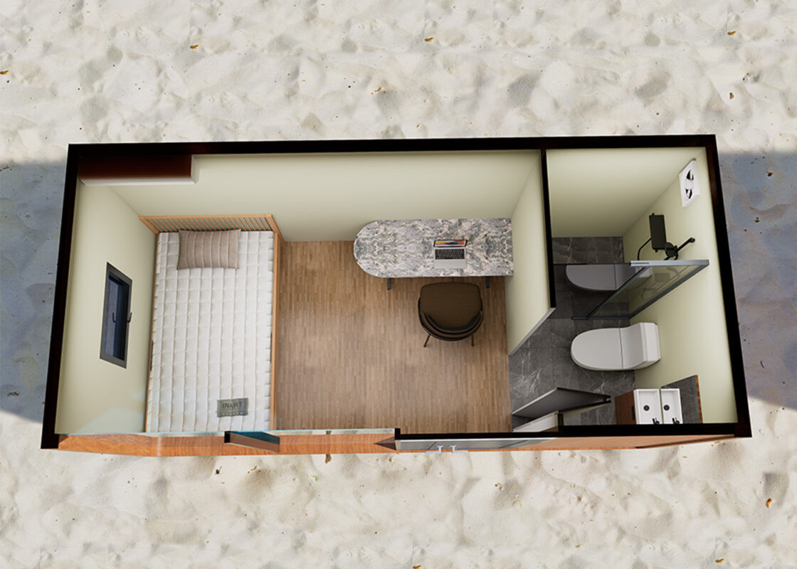 Built with recyclable, eco-friendly materials and a durable steel structure, this model provides reliable performance across different climates. The interior is fully factory-finished with ceiling systems, lighting, electrical wiring, outlets, and drainage systems.